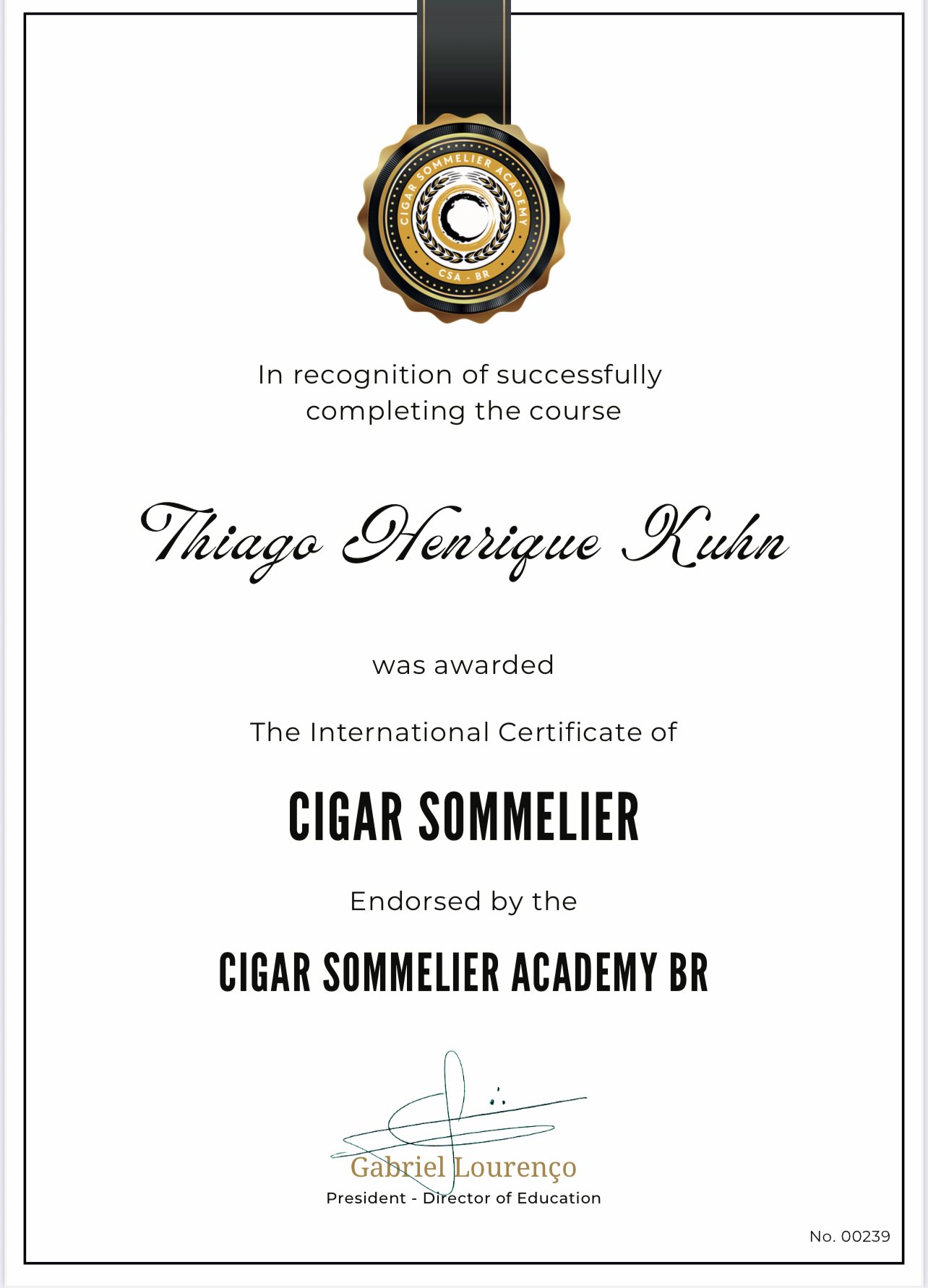 Sua jornada é marcada por uma dedicação meticulosa ao estudo e a prática, culminando na prestigiosa certificação de Cigar Sommelier pela renomada Cigar Sommelier Academy BR. Este reconhecimento não é meramente um título, mas um testemunho de sua expertise abrangente, que se estende desde as nuances históricas do tabaco até as complexidades da degustação e harmonização.
